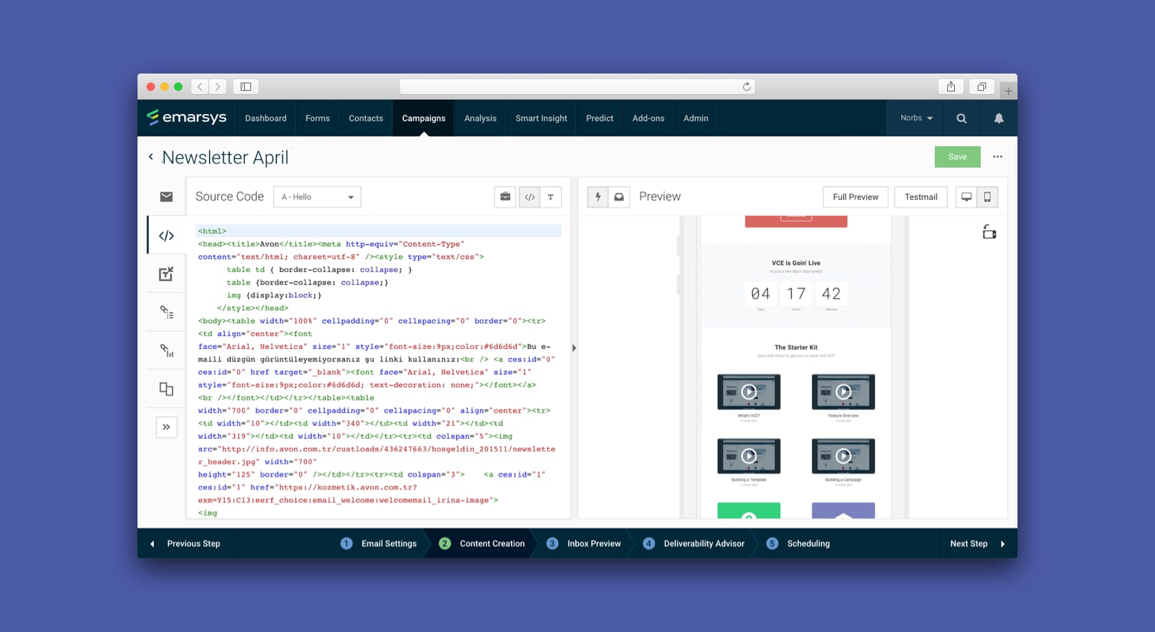 - Deliver better content with A/B version testing, customisable preview text (for notifications pop-ups), and mobile device preview.