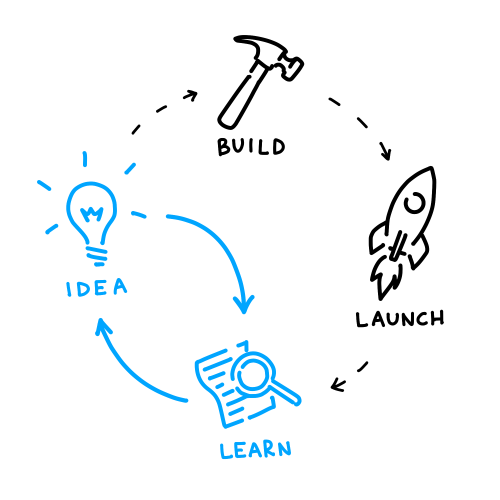 How can be it done so quickly? By cutting the usual ideation-building-launching-learning cycle short: we completely skip building and launching. So after the ideation phase, we rapidly build a prototype and then test it right away, which results in valuable lessons about the validity of our concepts and actual user needs.